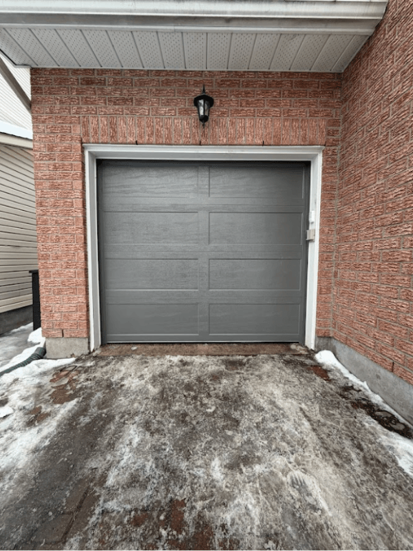 Give your Ottawa home a sleek, contemporary upgrade with this grey modern single garage door. Its neutral grey tone adds a refined, polished look that fits effortlessly with any exterior style. Clean lines and a minimalist design give your home a fresh, modern feel while keeping it practical and durable for everyday use. Looking to enhance your curb appeal quickly and professionally?